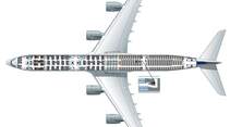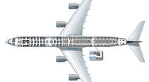 Der Vierstrahler ist mit 121 Sitzen ausgerüstet und verfügt über eine Galley im vorderen Kabinenbereich. An diese schließen sich Essbereich und Lounge an sowie ein Master-Schlafzimmer mit Dusche, ein zweiter Schlafraum und ein Büro. Dann folgen ein Kabinenbereich mit First-Class-Bestuhlung und eigenem Essbereich, eine weitere Galley und ein Sitzbereich für Angestellte. Den Abschluss bildet eine weitere Galley. Eine Satellitenkommunikationsanlage versorgt das bordeigene WLAN mit einer großen Bandbreite, so dass die Insassen an Bord auch Fernsehen über Satellit empfangen können.