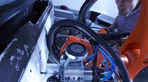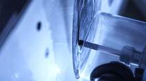 Sauers Truppe indessen verfolgt das strategische Ziel, einen Schaden mittels Kleben zu beheben. Der Roboter scannt den Schaden, erfasst die Oberfläche, berechnet die Form der sogenannten Schäftung und die Fräsbahn. Dann wird die beschädigte Oberfläche ausgefräst, und zwar schichtenweise – geschäftet eben. Anschließend werden die Reparaturlagen erstellt und das passgenaue Reparaturteil mit einem Klebefilm eingepasst. Unter Vakuum und Verwendung einer Heizmatte härtet das Reparaturpatch aus und kann wieder lackiert werden. Danach ist von der Reparatur nichts mehr zu sehen.