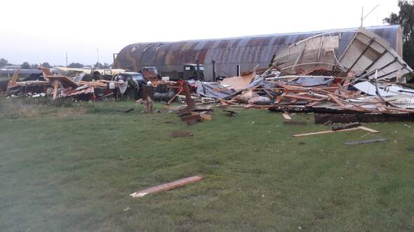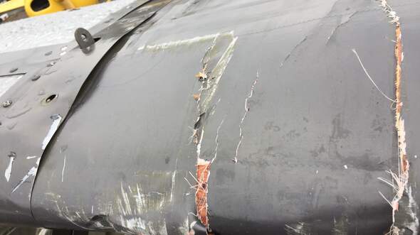 Viel schlimmer als die Zerstörung des Hangars ist jedoch die Beschädigung der darin enthaltenen Flug- und Fahrzeuge. Neben einer Aeronca, die komplett zerstört wurde, ist die Stinson L-5 Sentinel stark beschädigt wurden. Teile der Dachkonstruktion landeten auf der Cowling und dem Propeller des Aufklärers und beschädigten diese. Am schlimmsten ist jedoch die stark in Mitleidenschaft gezogene linke Tragfläche. Trümmerteile durchschlugen die Sperrholzbeplankung des Flügels und beschädigten den darunter liegenden Hauptholm. Die Stinson verfügt über Holzflügel, die nur sehr aufwendig wieder repariert werden können.