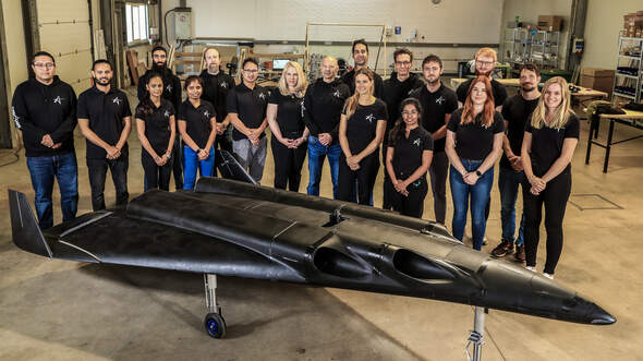 Ein Teil des Polaris Teams mit ihrem Demonstrator MIRA. Der Erstflug fand Ende Oktober 2023 in Peenemünde statt.